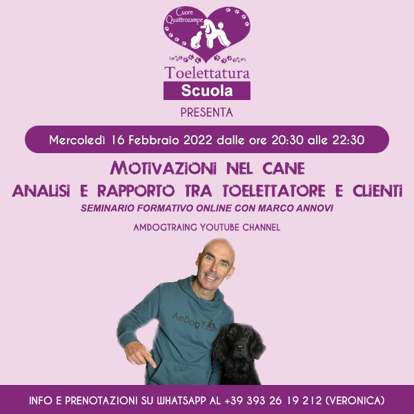 “MOTIVAZIONI NEL CANE” e “ANALISI RAPPORTO TRA TOELETTATORE E CLIENTE”